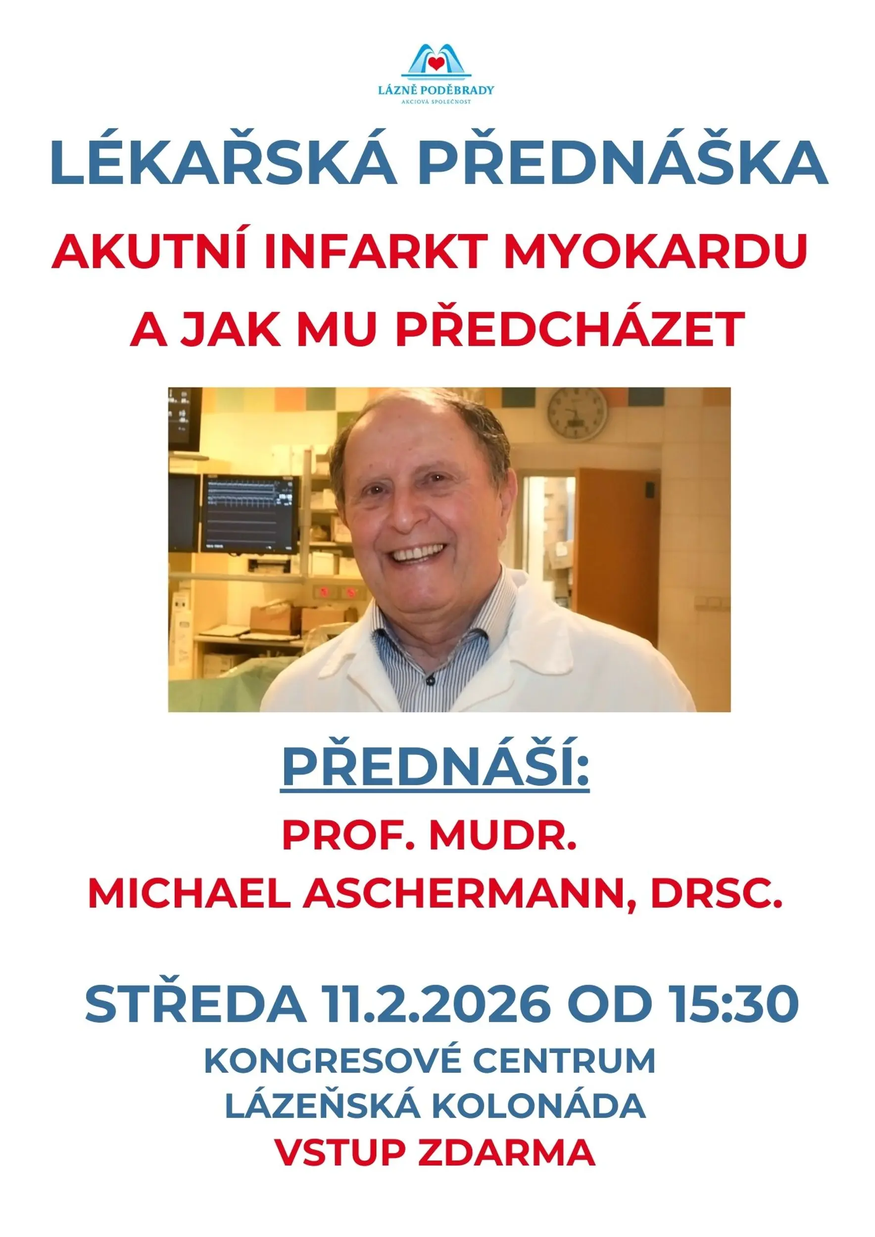 Srdečně vás zveme na přednášku prof. MUDr. Michaela Aschermanna, DrSc. na téma: Akutní infarkt myokardu a jak mu předcházet